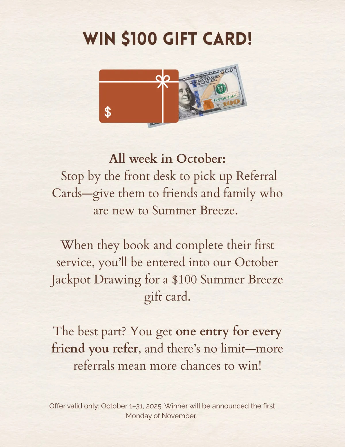 Every month we have special offers & deals! To view our flash sales and get special offers first, follow us on Facebook and Instagram @summerbreezesalon.